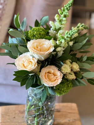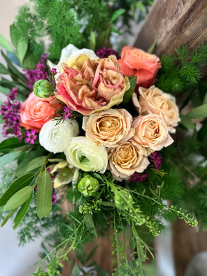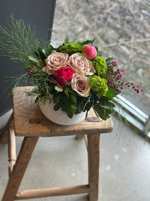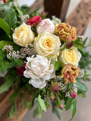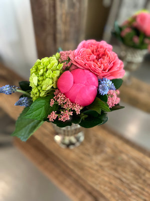 We're a different kind flower shop! We don't have 'floral menus' or even repeat arrangements. We buy the best of the best from our floral suppliers several times a week so our cooler always looks different, fresh and beautiful! Many of our clients just give us a mood - soft and pretty or vibrant and bright and know we will create something gorgeous with the freshest and most beautiful blooms available.