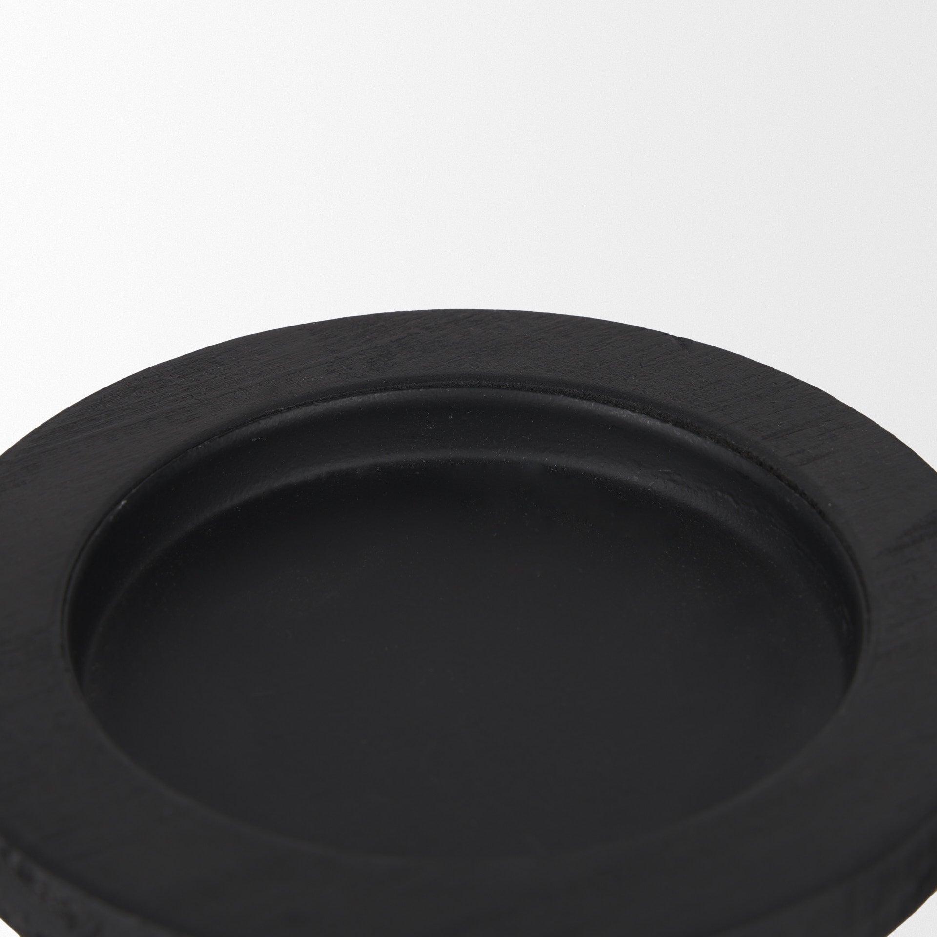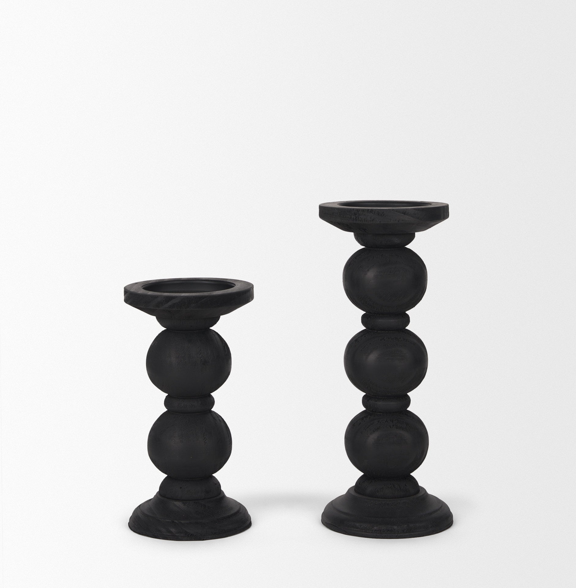 Wanda Matte Black Wood Pillar Candle Holders (Set of 2)